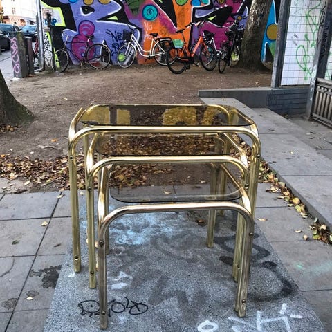 Retro indskudsbord / sideborde, 3 stk sortmalede borde med messing fødder i god stand