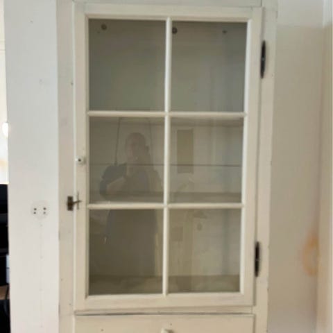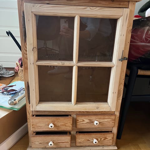 Væghængt vitrineskab i ok stand. Husker ikke designer/mærke, men det var oprindeligt ret dyrt.