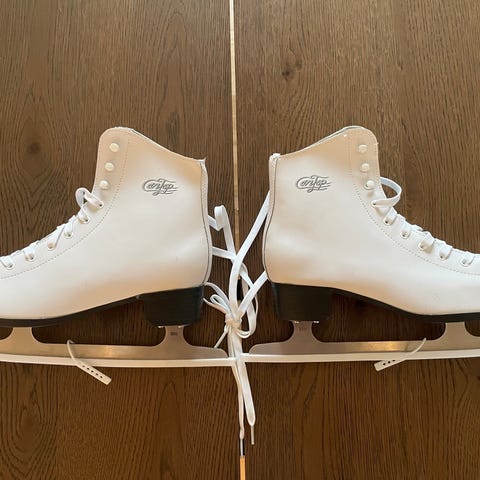 Andre skøjter i størrelse 41. Skøjterne er hvide og designet til skøjtning.