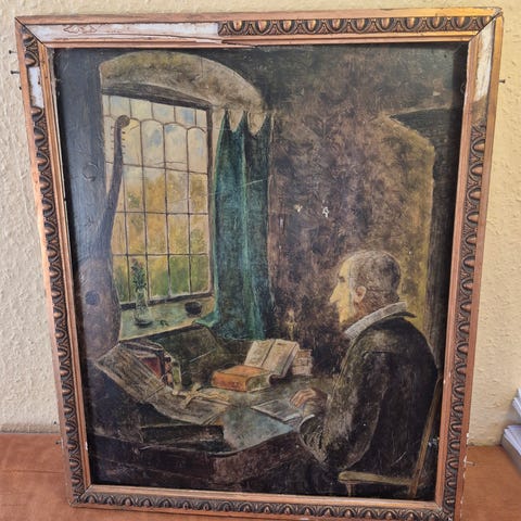 Håndmalet træpanel med motiv af en tukan og grønne blade. Panelet består af flere træplanker samlet og har en rustik finish. Kan anvendes som vægdekoration. Måler 70x67 cm