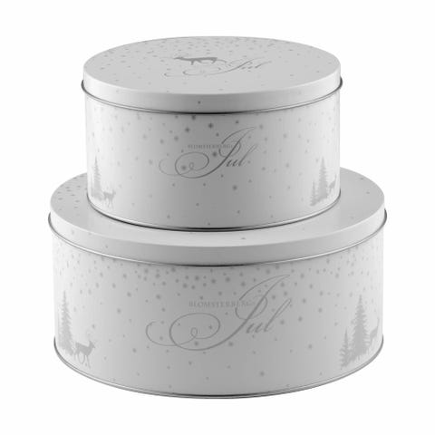 Æske med 4 små kageopsatser, hvide. Mærket er Blomsterberg.