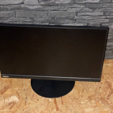 Lenovo Q24-20 24" skærm med HDMI-indgang. Skærmen har en sort farve og er designet til almindelig brug med en opløsning passende til kontor- og hjemmebrug.