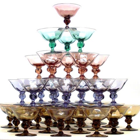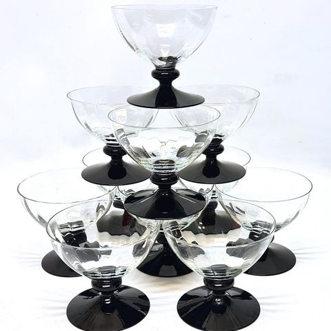 42 isglas, der fint kan anvendes som champagneskåle, fra serien Viol, af Jacob E Bang for Holmegaard, 1928