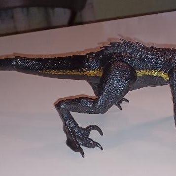 Dinosaur maske i grå med orange øjne og justerbar rem. Masken kan sige lyde, npr munden åbnes. Masken dækker ansigtet og har detaljeret tekstur, der efterligner reptilskind. Egnet til kostumebrug og rollespil.