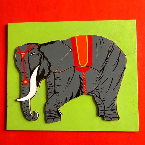 Sælger denne træ puslespil fra Lupilu af en elefant.