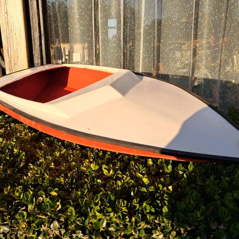 Modelbåd,glasfiberskrog. L 76cm, B 24cm, H 13cm.