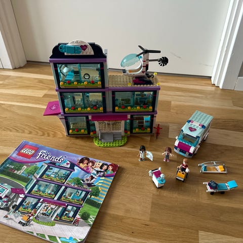 LEGO Friends LEGO Friends Dyrehospital byggesæt med figurer og tilbehør. Sættet indeholder en bygning med glasvægge, dyreplejeudstyr og flere detaljer. Passer til børn og samlere, der interesserer sig for dyrepleje og kreative byggeprojekter.