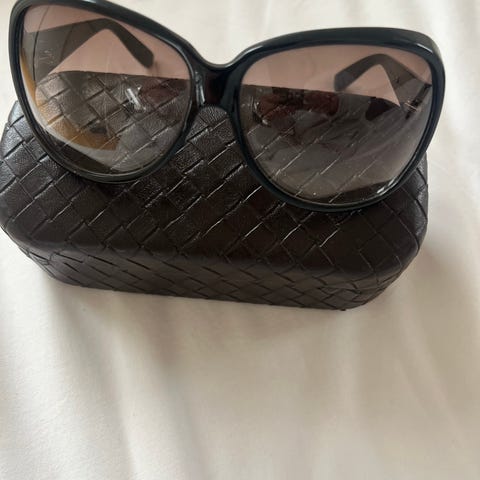 HM solbriller til kvinde med sort og lyserød stel. Brillerne har runde glas med en let katteøjeformet ramme. Materialet og størrelsen er ikke angivet.