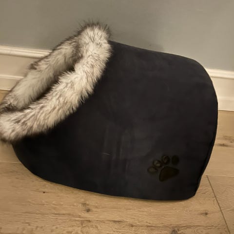 Kingpet katteseng i beige farve lavet af blødt fleece materiale. Sengen har en firkantet form med høje kanter, der giver støtte og komfort.