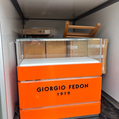 Vejer omkring 100 kilo… vil jeg tro. Har flyttet rundt flere gange med 3 “flytte-hunde”