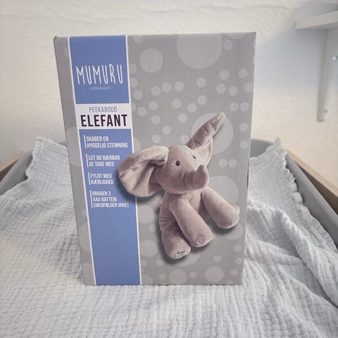Sælger denne søde tittebøh/peekaboo elefantbamse fra Mumuru.