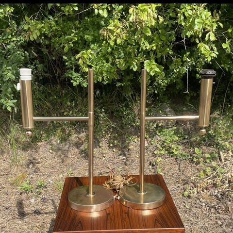 To store flotte lamper af metal og plast. Lamperne er Bergboms B-33 og er yderst sjældent udbudt. Højden er ca. 55 cm. og de har en diameter på ca. 38 cm.