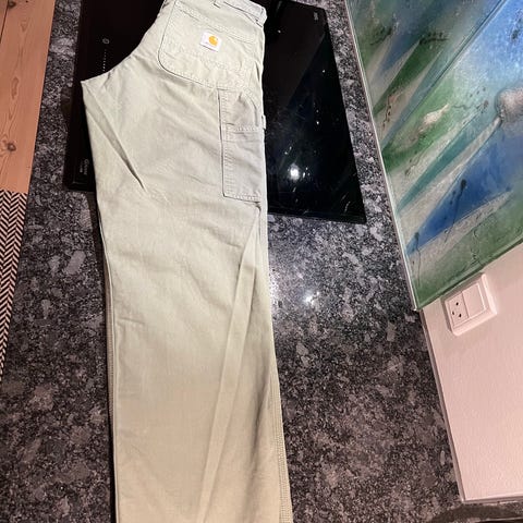 Carhartt Bukser Simple Pants Denison i størrelse XS (27 x 32) til herrer, fremstillet i lysebrun kanvas. Bukserne er designet til holdbarhed og komfort med flere lommer, herunder en baglomme med Carhartt-logo. Materialet gør bukserne velegnede til arbejde og daglig brug. Brugt få gange, og så blev de desværre for små. De er lagt op for neden med en fold på 8 cm, så de passede en dreng på 12 år - kan sagtens lægges mere op eller ned igen Ikke-ryger hjem. Ingen husdyr.