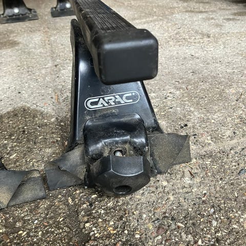 Volkswagen tagbøjler til bil, designet til at fastgøre ekstra last på bilens tag. Fremstillet af metal med plastikbeslag, velegnet til transport af genstande som cykler eller kufferter. Passer til specifikke Volkswagen bilmodeller bl.a. Lupo og 3L