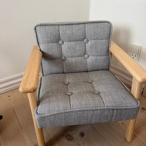 Pæn børnestol med vippe der kan tages af stolen og bruges for sig selv, købt som et sæt. I fin stand, men med brugsspor.