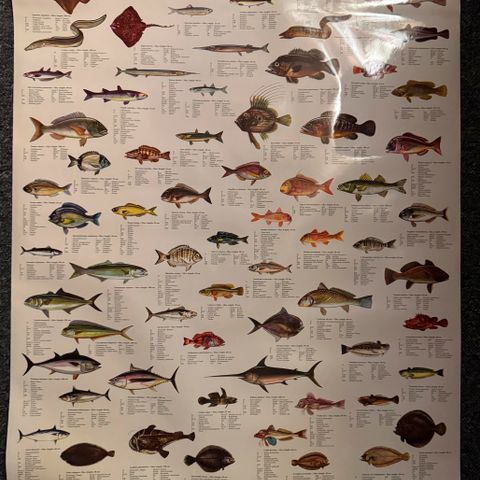 Temperate Aquaculture plakat, der illustrerer forskellige fiskearter fra tempererede akvakulturområder. Plakaten viser detaljerede billeder af fisk som laks, torsk, ål og andre arter, med tilhørende navne. Velegnet til undervisning eller dekoration.