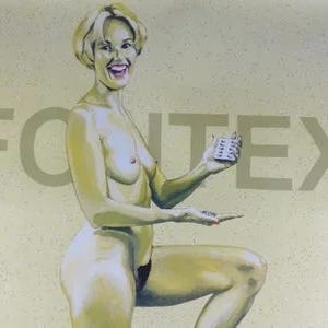En af tre oversize Jyllands Posten reklameplakater som vi har til salg. De øvrige er af Peter Carlsen og Bentemarie Kjeldbæk. Disse har været opbevaret rullet sammen siden omkring 1995.