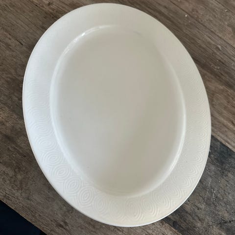 Royal Copenhagen Salto rundt fad med et mønster i relief på hvid porcelæn.