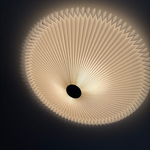 Sælger denne loftlampe. Der er lidt meget små hakker i plisse skærmen, men det er ikke noget man ser. Den skal tørres af.