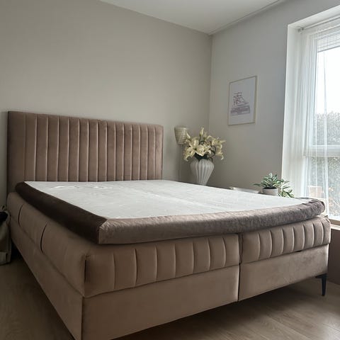 bare sengen uden madrassen , uden bemærkninger . Prisen med madras er 9000 kr.