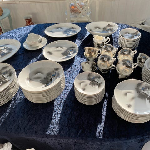 Flot håndmalet japansk spisestel. Sættet indeholder