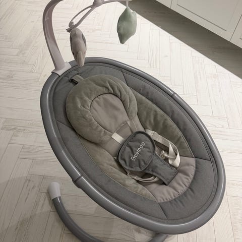 Rocker Low Skråstol fra Beemoo med smart gyngefunktion og stilrent design. Gyngefunktionen får skråstolen til at bevæge sig til siden og kan indstilles i fem forskellige hastigheder. Musikken består af flere beroligende melodier, og volumen kan indstilles. Der er timerfunktion, som kan indstilles til 15, 30 eller 60 minutter. Skråstolen har en aftagelig legebøjle med to bløde figurer. Perfekt til leg eller til at berolige din baby! Det er også let at flytte legebøjlens position rundt på skråstolens ramme.
