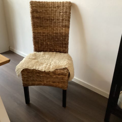 Den sidste stol er gået i stykker i flettet. Et nyt sæde med flet koster 560 kr: