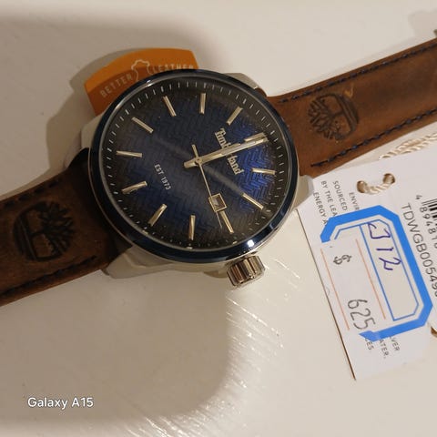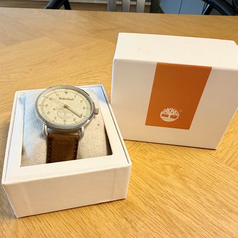 Timberland herreur med brun læderrem og rund urskive. Uret er designet til mænd og kombinerer funktionalitet med klassisk stil.