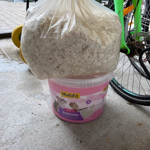 Vandskål til hamster. Der er én af de hvide tilbage.