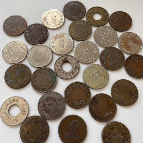 157 stk. spillemønter alle fra Kjøbenhavns Sommer-Tivoli med pålydende værdi 25 øre.