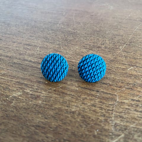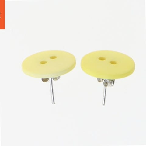 Flotte gule ørestikkere med orange tråd, som er lavet af møbelknapper/overtrukket knapper. De er købt i en designbutik på Stefansgade på Nørrebro og er kun anvendt få gange. Jeg kender ikke materialet på selve ørestikkeren, men de er nikkelfrie.
