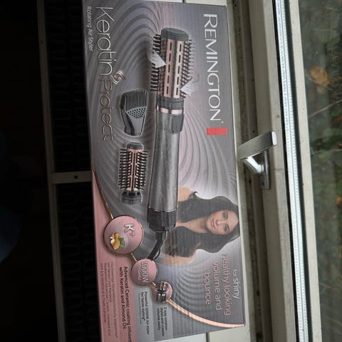 Jeg sælger denne airstyler fra Remington, da jeg har opgraderet til en Dyson airstyler i stedet. Den er helt ny og aldrig blevet brugt. Den er kun blevet taget op af kassen og så lagt i min skuffe. Derfor medfølger kassen ikke.