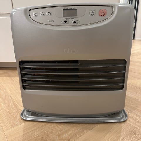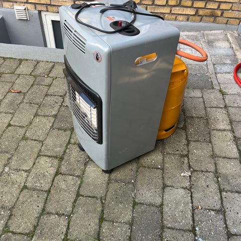 Qlima gasovn med en effekt på 3,5 kW. Farven er sort, og den er designet til opvarmning af mindre rum. Ovnens dimensioner og materialer er standard for denne type gasovn.