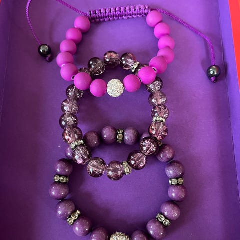 Accessorize armbånd lavet af plast med perler i forskellige farver og blomsterprint. Armbåndet er designet til unisex brug.