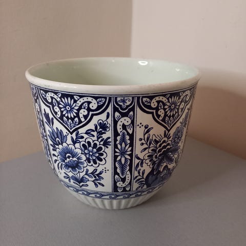 Vinrage håndmalet potteskjuler, måler højde 12 cm, Ø 14 cm. Pris kr 100 afhentet Kbh Ø. Forsendelse kr 50