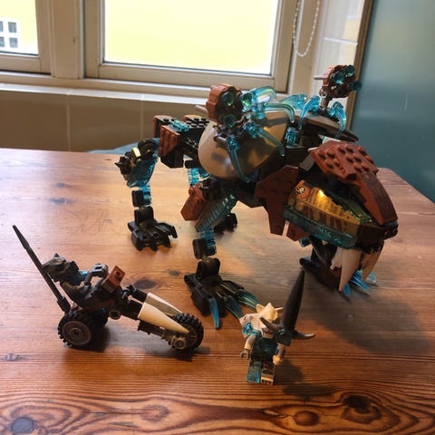 LEGO Legends of Chima LEGO 70145 Mammoth Styracosaurus byggesæt med flere figurer og tilbehør. Sættet indeholder en stor elefantlignende figur med bevægelige dele samt flere mindre figurer. Leveres med original manualer. Jeg kan ikke garantere at der ikke er en enkelt klods eller to som mangler, men så vidt vi kan se er den helt intakt. Figurerne der medfølger er dog dem vi har fotograferet, ikke nødvendigvis alle dem fra den originale pakke.