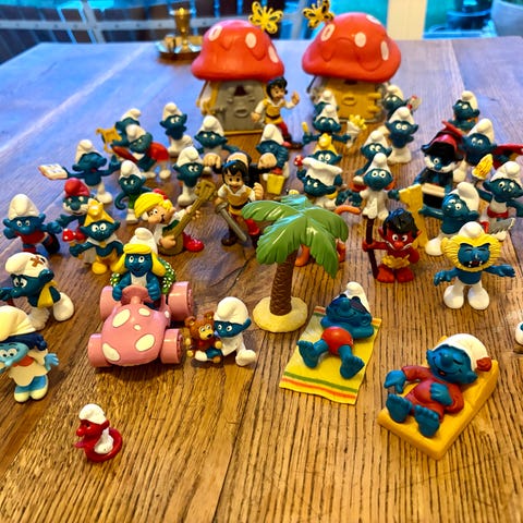 17 stk. blandet Smølfer + smølfehus og 4 stk. ass. En med knækket fiskestang.