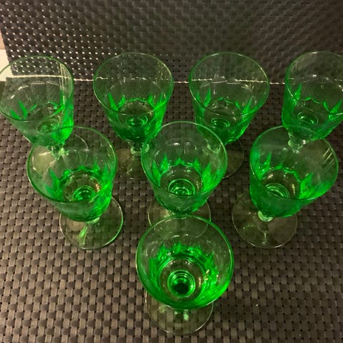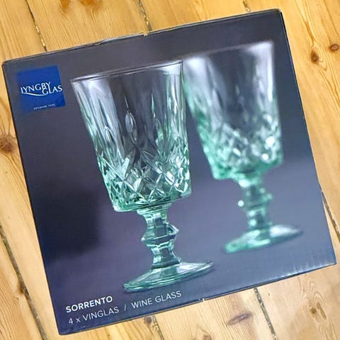 Lyngby Glas Sorrento vinglas i grøn farve med en kapacitet på 29 cl. Sættet indeholder 4 stk. glas. Glasene har et klassisk design med skåret mønster og en grøn stilk.