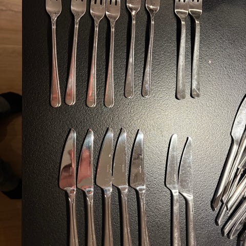 4 stk. kagegafler, 4 stk. teskeer.