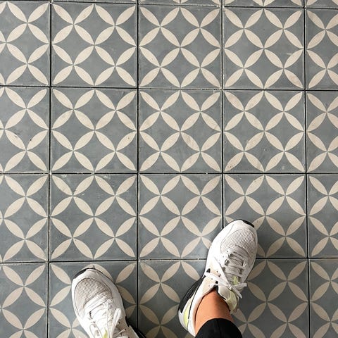 6 1/2 kasser med håndlavede Marokk cement fliser i farven Cream (Milk) og formen Stix.