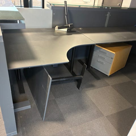 Moderne receptionsskranke i slidstærkt MFC med ABS-kanter, buede paneler og eksklusiv sokkel i aluminium-look. Perfekt til receptioner og indgangsområder