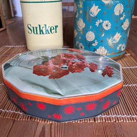 Gamle fine dåser med blomstermotiv
