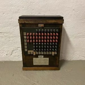 Barskab,fritstående i massiv sinkesamlet elmetræ,med 2 låger,skuffe og klap.