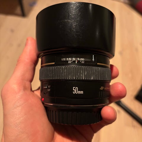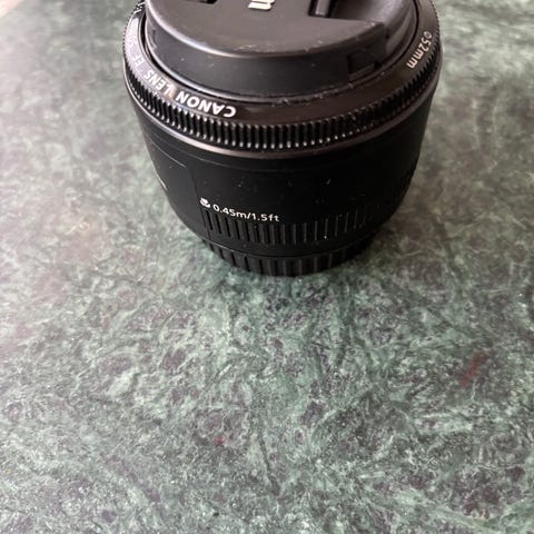 Canon 50mm objektiv med standard brændvidde, velegnet til fotografering med Canon kameraer. Objektivet er kompakt og let, designet til at levere skarpe billeder med naturlig dybdeskarphed.