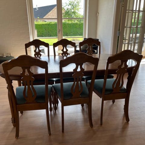 Bordet har nogen slid mærker på ben og enkelte skrammer på bordplade.