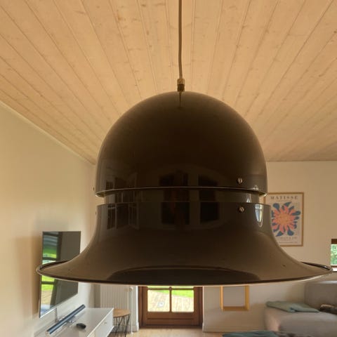 Smuk retro lampe designet af Claesson Bringzen. Hatten. Trænger til restaurering og købt med henblik herpå, men har ikke plads alligevel. Har brugsforening og et par mindre skrammer.