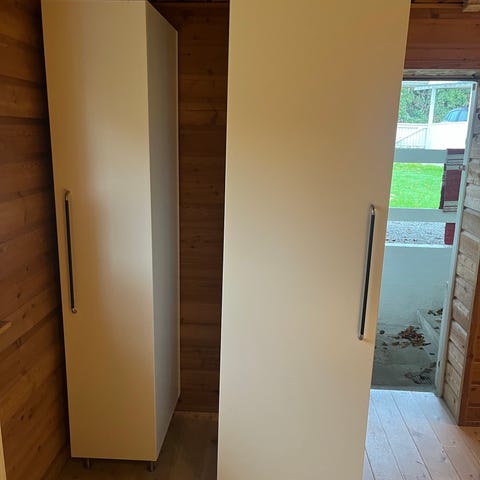 Skabene er samlet ved køb, så man skal selv sørge for at skille dem ad/bære dem ud.