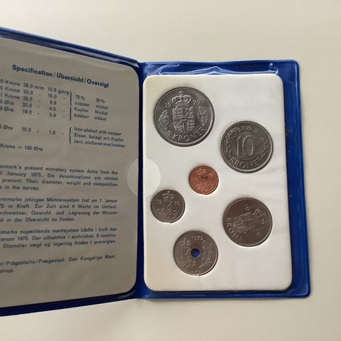 Komplet møntsæt fra 1976 i original mappe fra Kjøbenhavns Handelsbank.