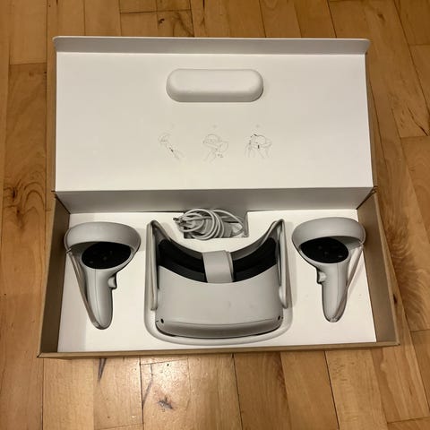 Meget god stand der er nogle mærker på siden af headsetet, alt på billedet er inkluderet og er i den originale boks lidt købt for nogle år siden men ikke brugt i de sidste par år men fungere så godt som nyt, skal oplades med et usb-c kabel oplader er ikke inkluderet
