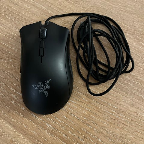 Mus mangler gummikant i venstre side og højre gummikant sidder løst. Ellers ingen fejl på hverken tastatur eller mus.